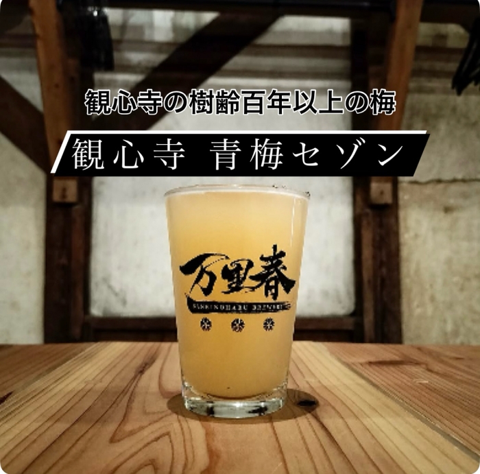 観心寺の【梅ビール】「青梅セゾン」が、万里の春 @banri にて開栓中。