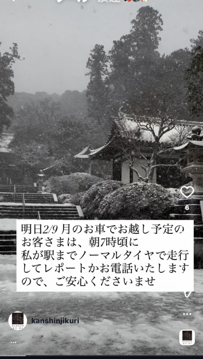 明日の朝7時ぐらいに私が駅までノーマルタイヤで走行可能かレポートかお電話でのご連絡をいたしますので、ご安心ください。